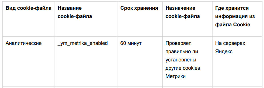 Cookie-файлы третьих сторон устанавливаются согласно информации, указанной в таблице: